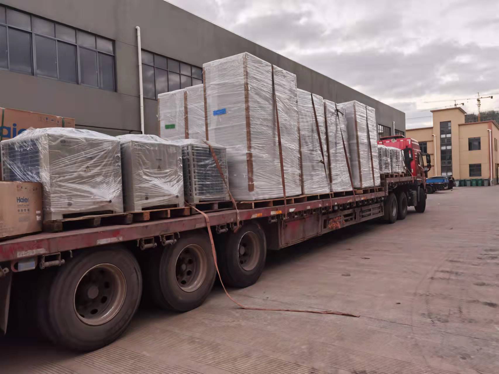 春節臨夏季的臨時迎來了制冷空調最忙碌的旺季。在上海眾有的廠區,記者看到,幾輛大貨車車在等待裝運,數名裝卸工人正在緊張搬運貨物。一片繁忙景象,員工們正在全力裝運,寓于著2022年里上海眾有定戰而全勝!