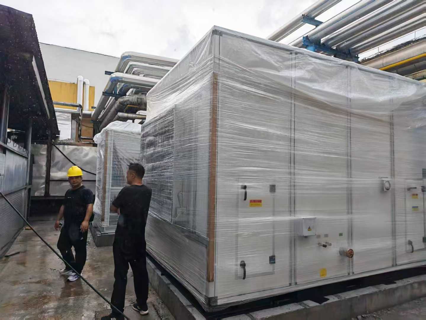 該設備在45000立方米/小時風量下,可應對溫度38℃、相對濕度90%及以下的氣候條件,除濕后出風空氣含水量達25~31克/立方米,空氣溫度不低于10℃。設備總電源為三相四線380V、120KW,需配置約120平方電纜。