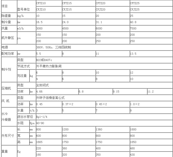 水冷調(diào)溫、降溫型常規(guī)除濕機技術(shù)指標<1>